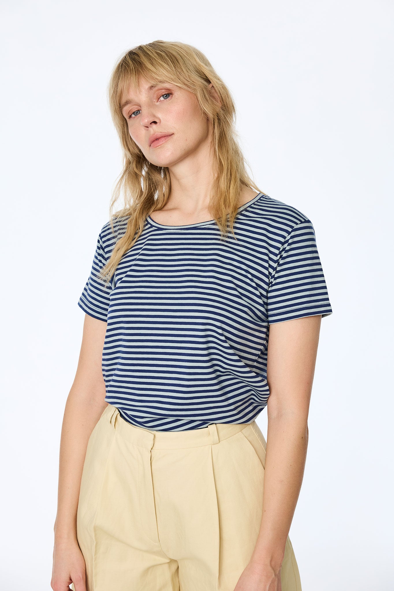 Mit seinem klassischen Rundhalsausschnitt und der bequemen Passform schmiegt sich das Shirt sanft an und bietet höchsten Komfort für jeden Tag. Ob solo getragen an warmen Nachmittagen oder als maritime Basis unter einer Strickjacke – dieses Shirt aus nachhaltigen Naturfasern ist ein langlebiges Lieblingsstück, das Qualität und entspanntes Design harmonisch vereint.