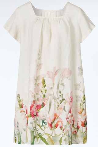 Leinenkleid mit floralem Aquarell-Print und Biesen-Details