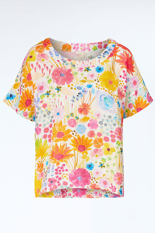 Kurzarm-Top aus reinem Leinen mit floralem Druck