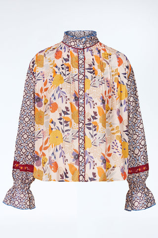 Leinenbluse mit farbenfrohem Wiesen-Print