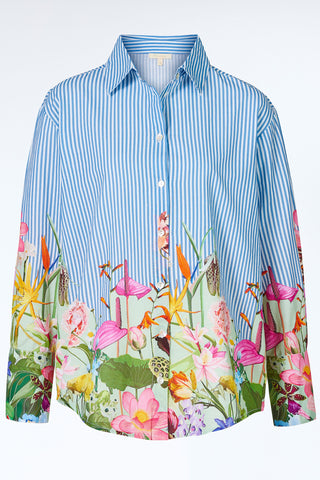 Gestreifte Baumwoll-Bluse mit floralem Print