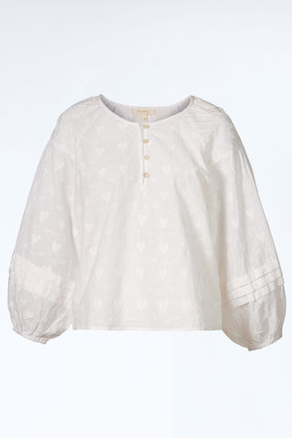 Baumwoll-Bluse mit Allover-Stickerei und Trompetenärmeln